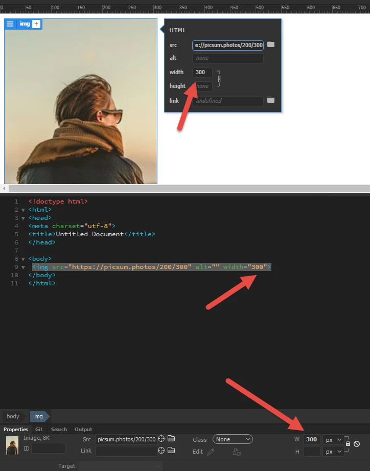 There are some limited image editing tools in the main Properties window, things like crop, resample, sharpen, etc. There is also a function called Commit Image Size. It's represented by a small checkmark that appears near the width and height attributes when they're changed from the natural settings of the image. If the checkmark is clicked, the image's size is changed permanently, unless undone before closing the current document.