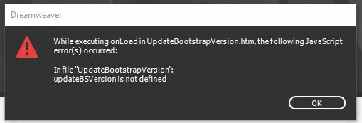 Have you tried this KB article, specifically the re-create user folder: https://helpx.adobe.com/dreamweaver/kb/troubleshoot-javascript-errors-dreamweaver-cs6-cc.html ? If that doesn't work, you could try re-installing, or if that is still not working, the last resort is to try another user account on your computer and if the error is not persistent there it could be an issue of a corrupt OS user profile in which case you would need to migrate to a new user account.