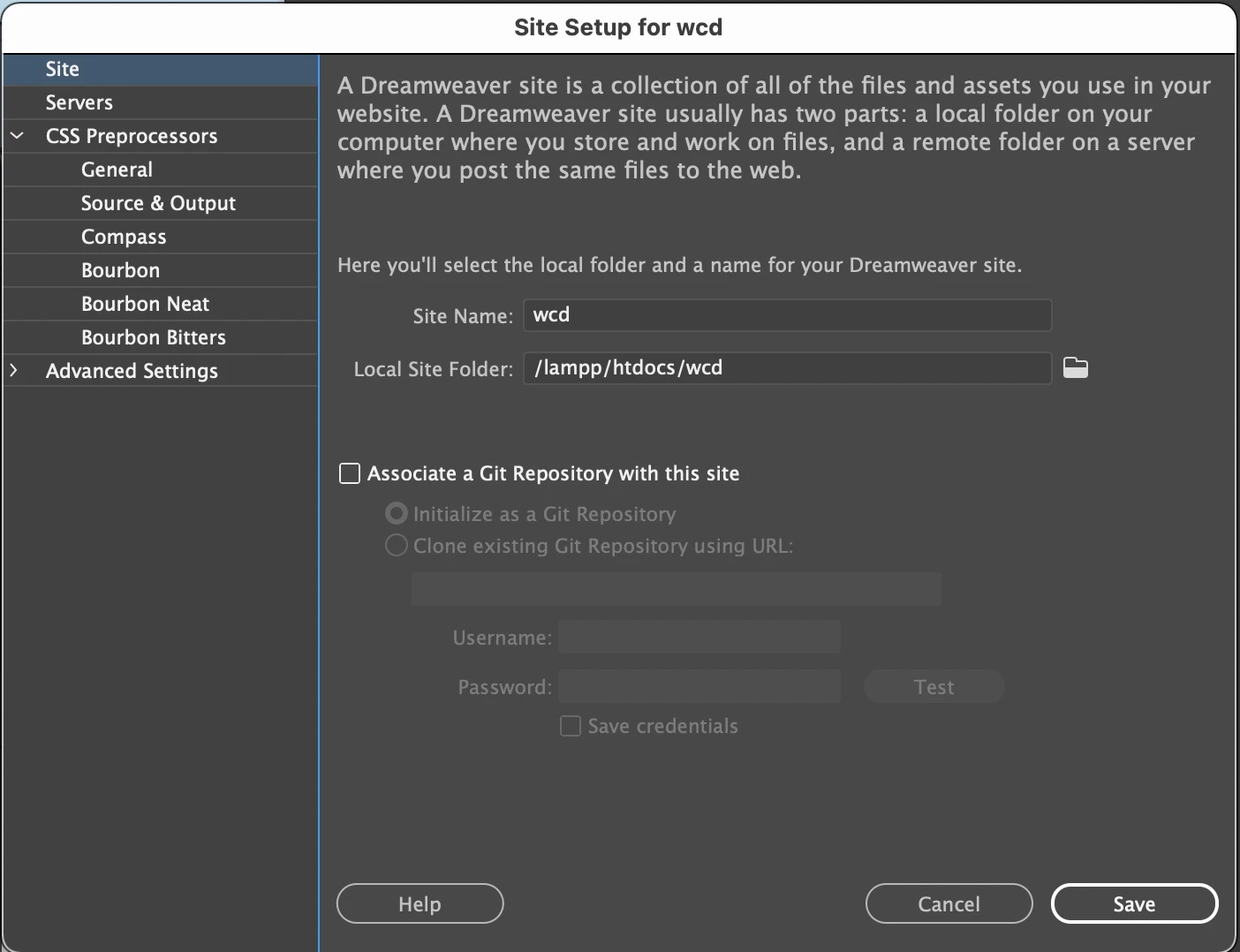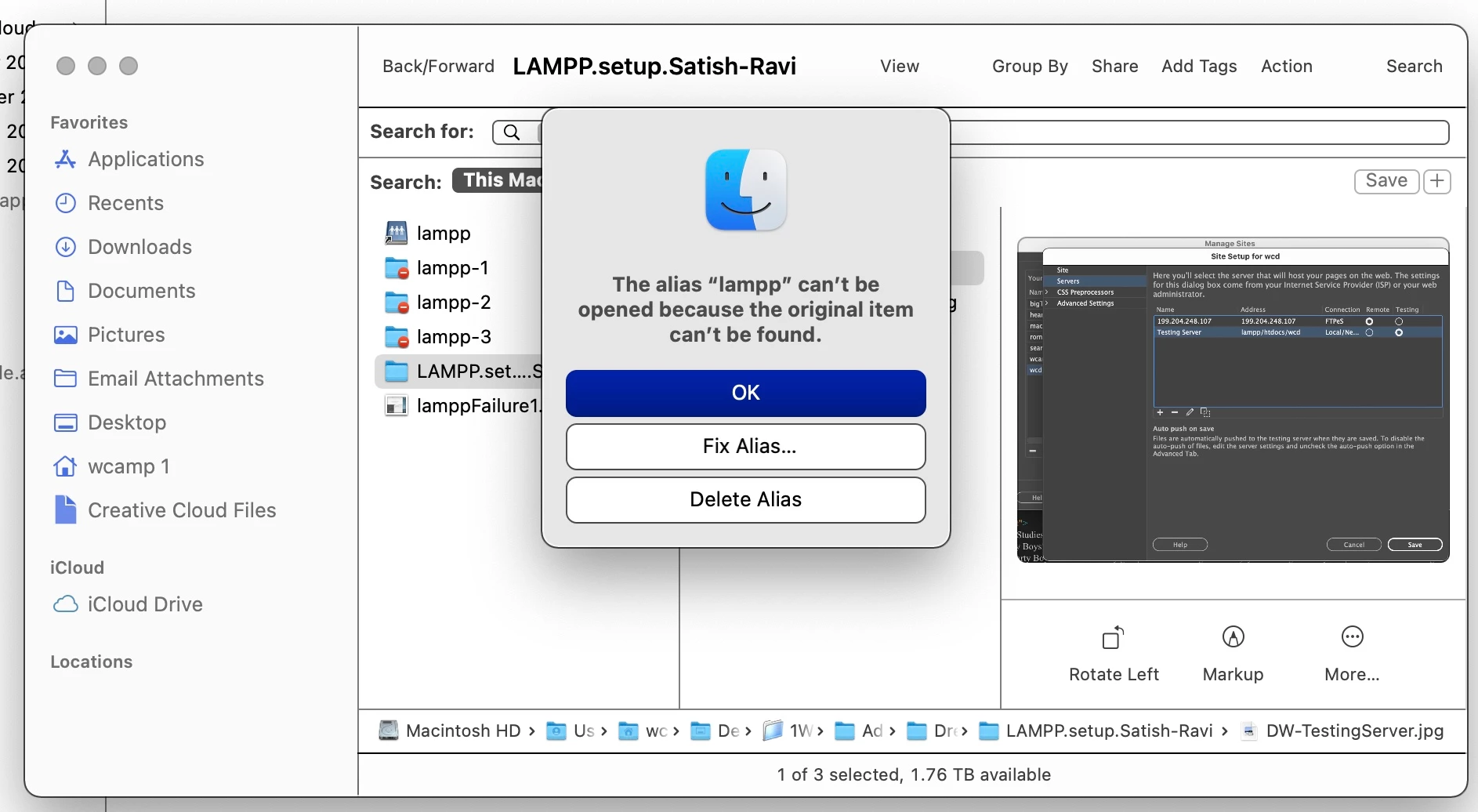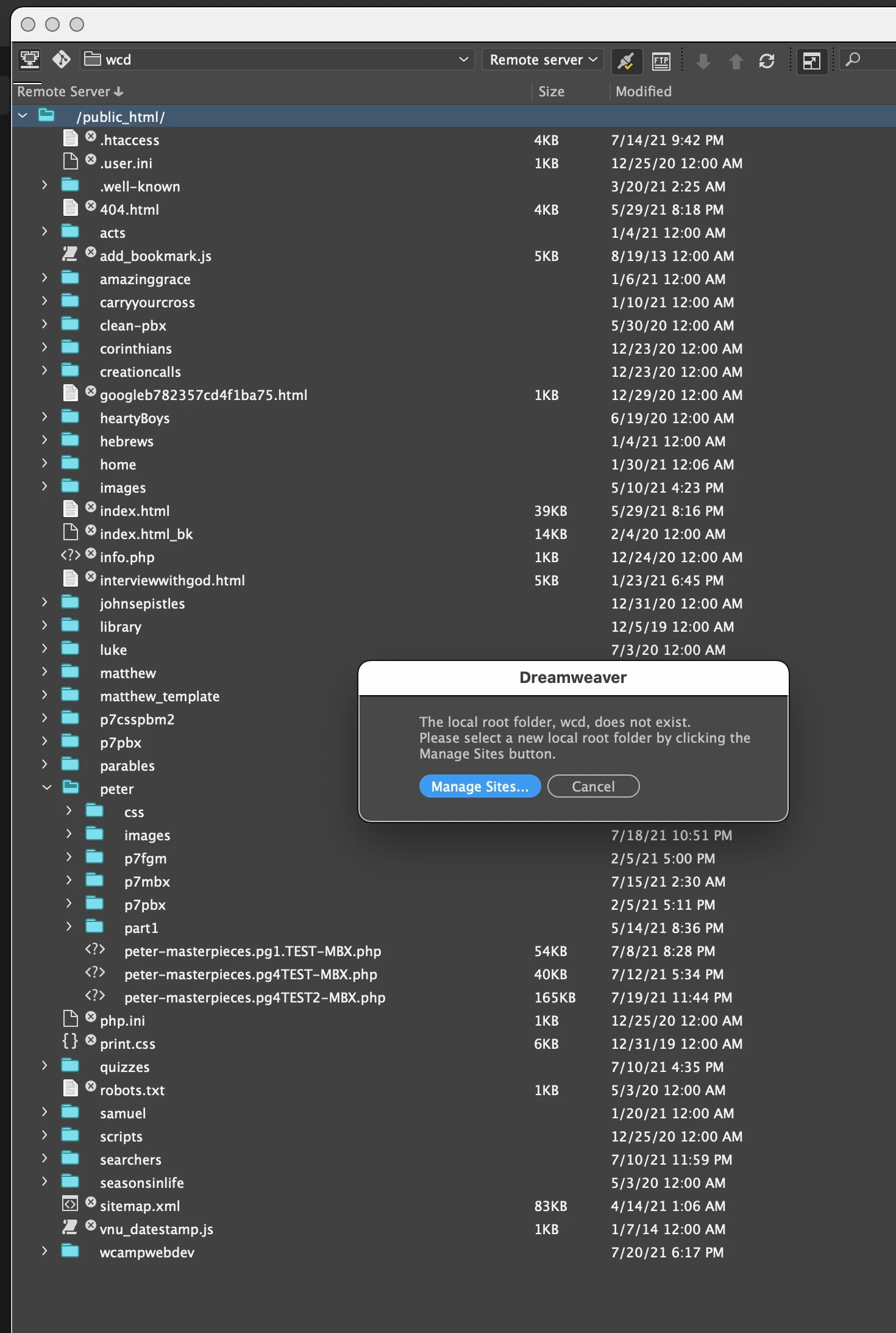 I then tried to manage the DW app by selecting the local site folder. Sadly, after browsing for that lampp folder and its files, . . .
