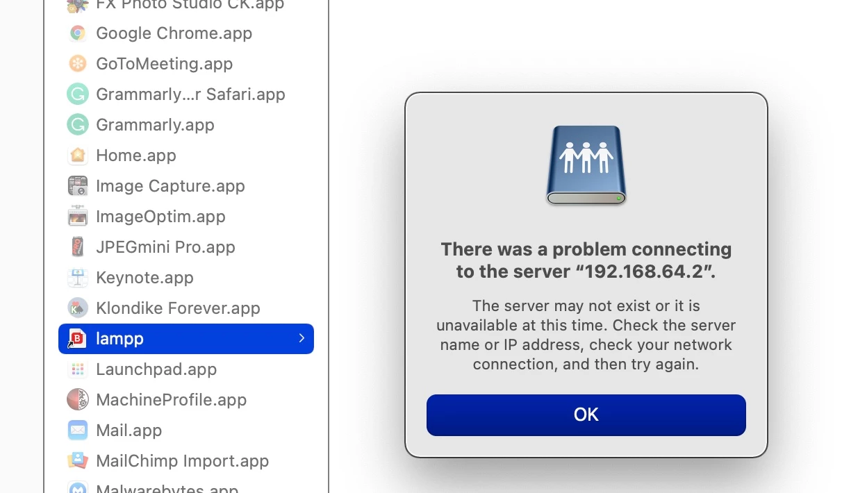 So I then double-clicked the lampp alias in the Applications folder and got this message.