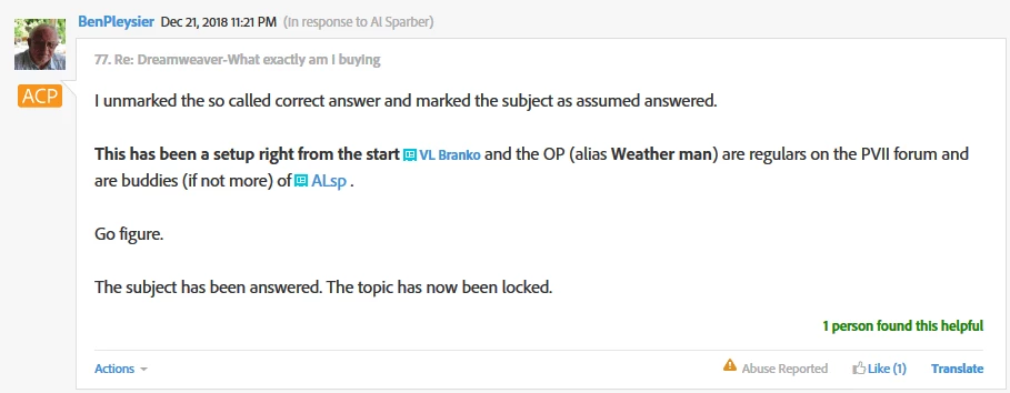 I blacked out personal email addresses. Ben's post is at the bottom of the screen capture. After I threatened to take action, his accusatory post was removed from the forum... likely to destroy evidence.