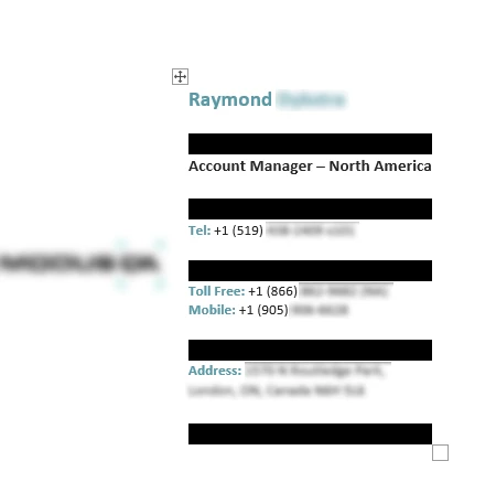 In this case, someone has come to me complaining about black bars in their email signature that appear after exchanging a few emails. I've attached images of what the signature should look like, vs how theirs appears with the black bars (identifying information has been blurred out).