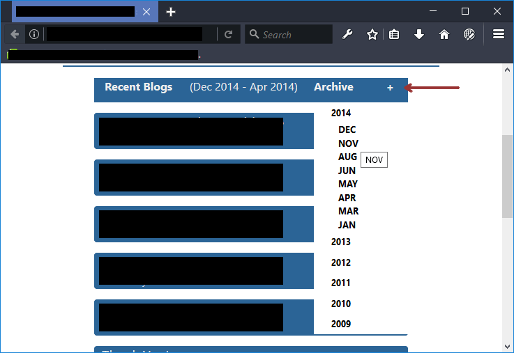 Then, click a year to display months in which at least one blog entry was submitted.