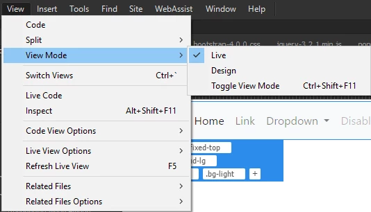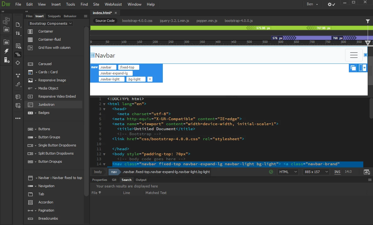 Everything was working great using Bootstrap 4. I had left my project for one week and when I returned, the navigation bar had reverted back to a simple text format. I tried to troubleshoot what happened and decided to delete the entire 'Navbar' (fixed to top) and start over. When I added the new 'Navbar' the following error came up: