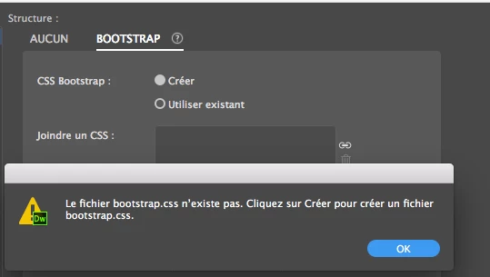 Quand je crée un nouveau fichier HTML Bootstrap : Bootsrap CSS : créer - OK