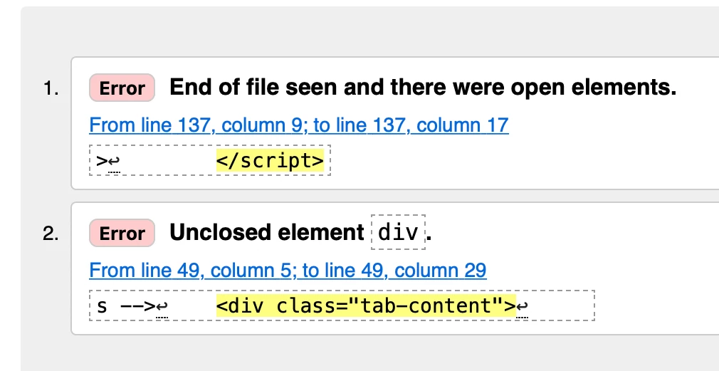 and in W3C checker I get two errors: