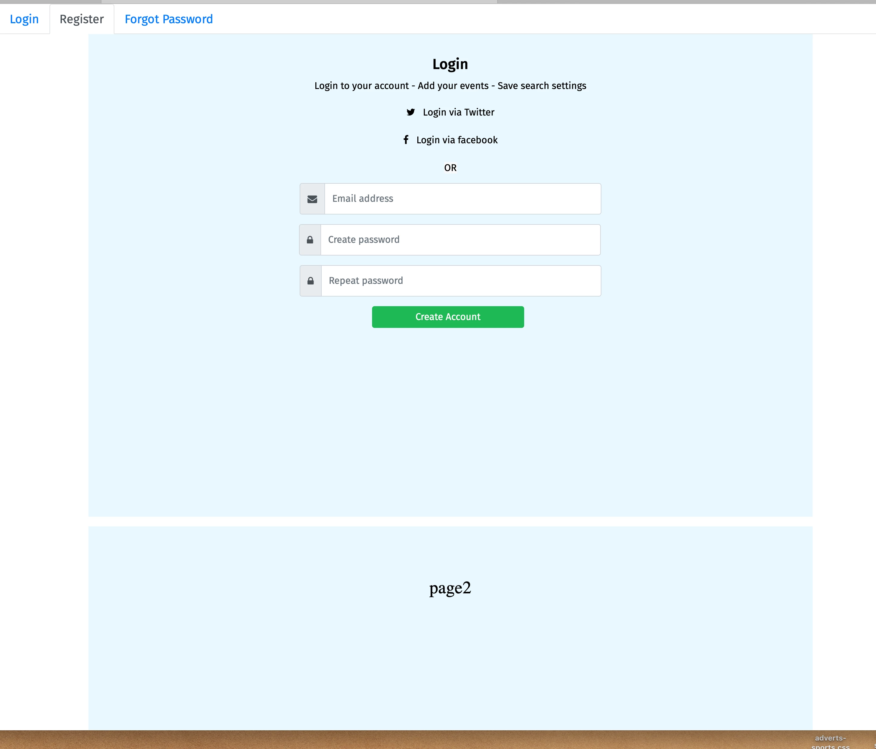 <p class="text-center">Login to your account - Add your events - Save search settings</p>