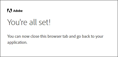And - when I log in with my Adobe ID I get a message that everything is ok - and that I can go back to my application.