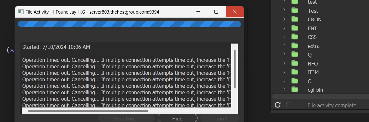 Activity shows complete but connection persists retrying and failing/timing out. Canceling does not stop it. Atempting to close the program warns and asks if I want to cancel 1 time. Upon yes/ok, the app stays open and will not prompt the warning again. I have to use task manager to close it.