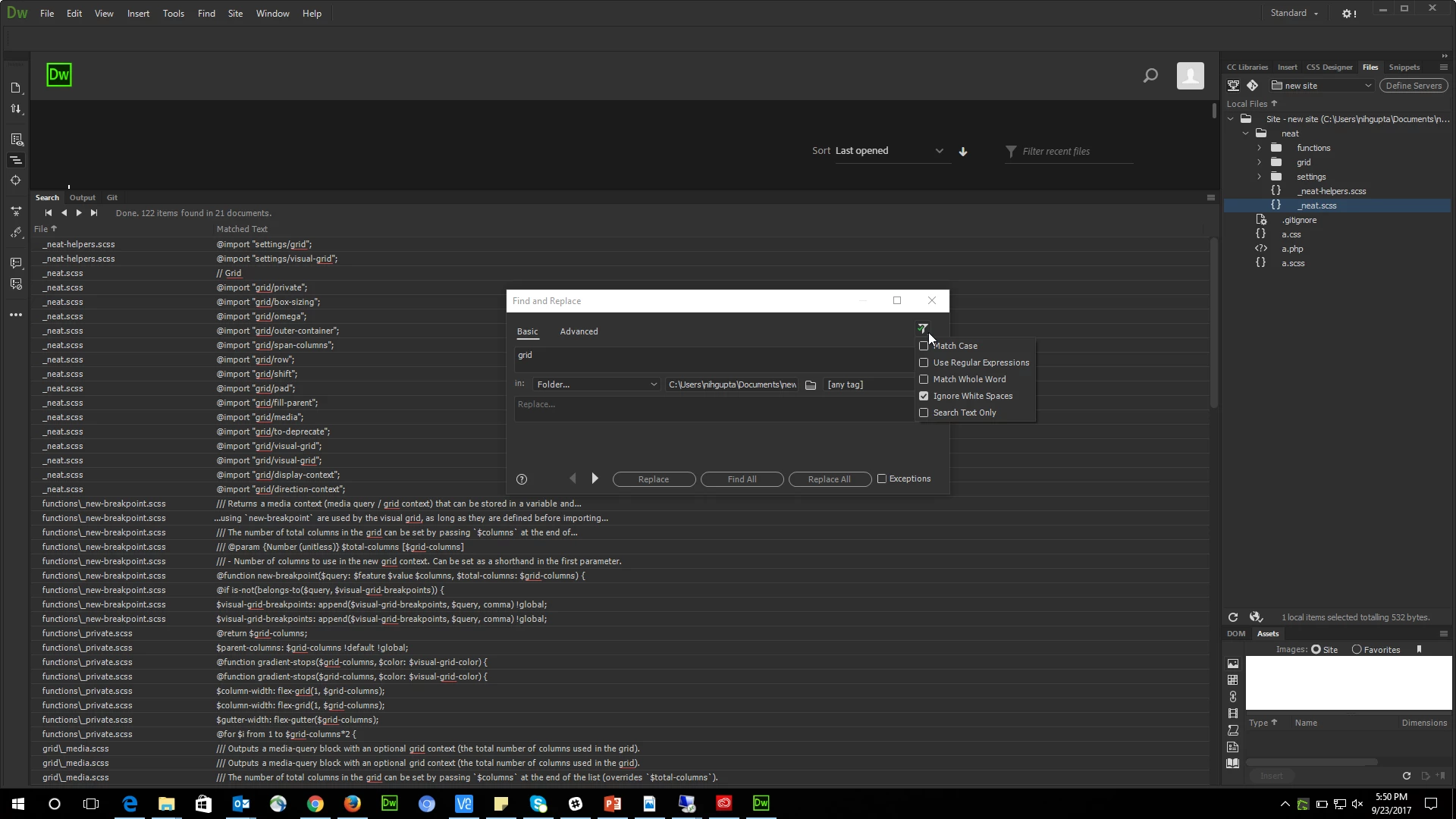 Can't do a 'Find All' search in folder of SCSS in Dreamweaver