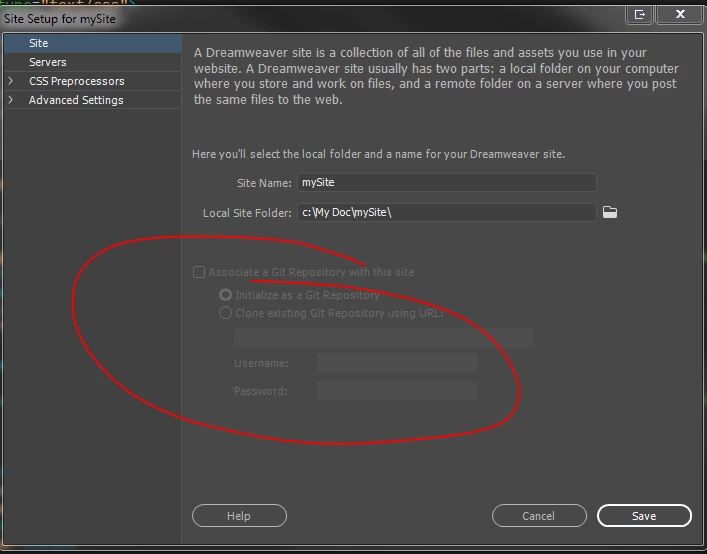 Can anyone suggest why the option to associate a git repository is grayed out and I am unable to select it?
