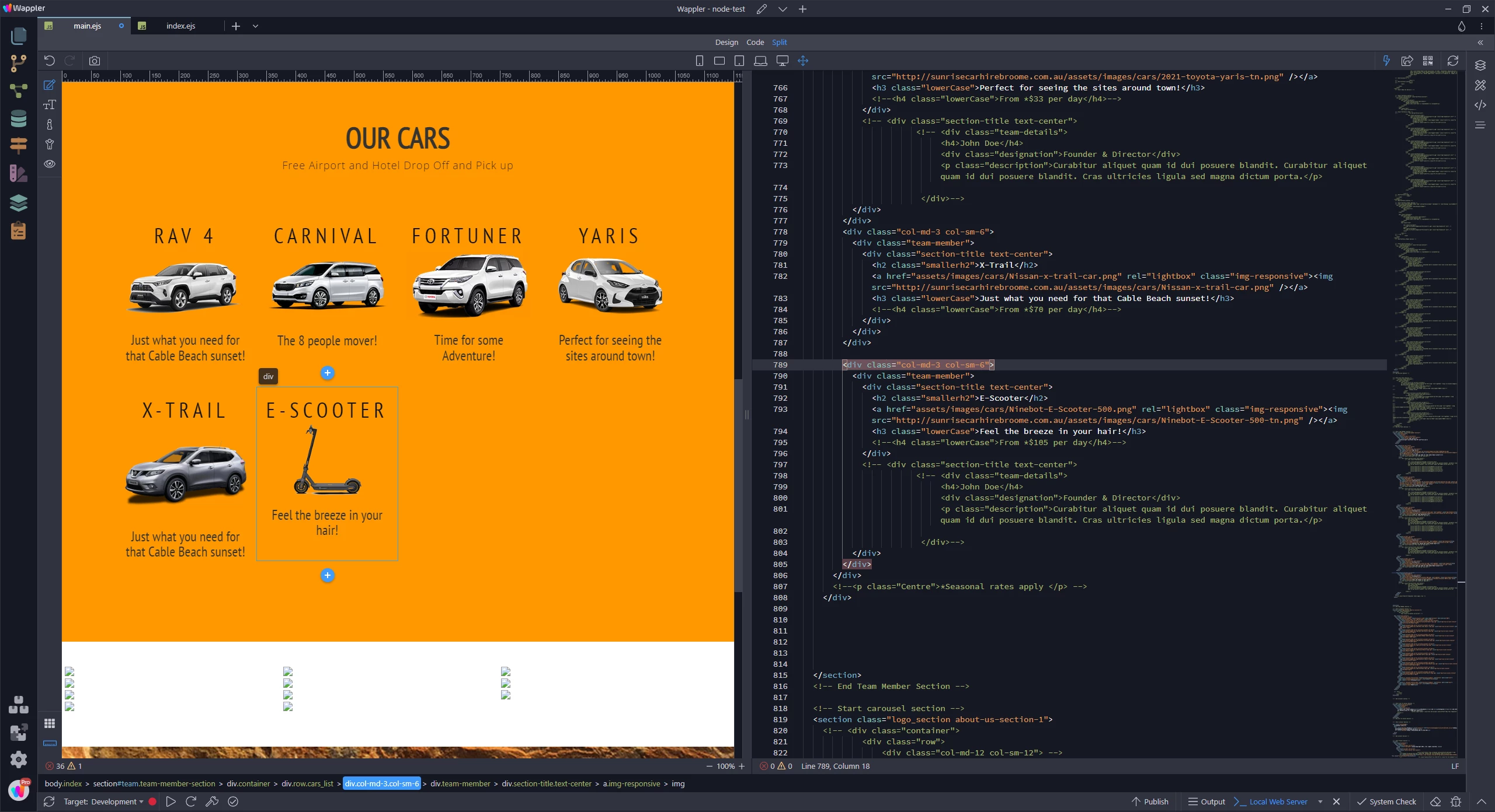 I have copied the code from the Xtrail for the escooter and changed the image and the title but it has dropped out of the row.