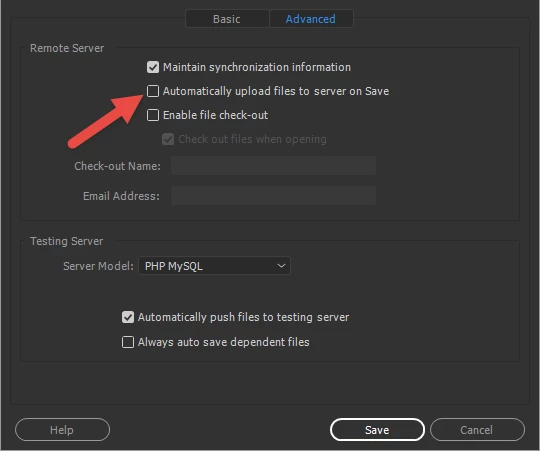 If that is the problem, where do I find the "automatically upload files to the server on Save" option in the 2017 version?