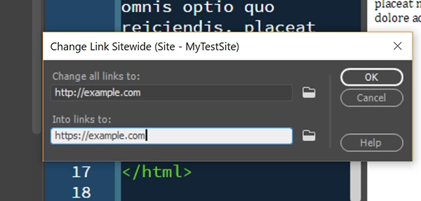 Changing sitewide links, no link to site found