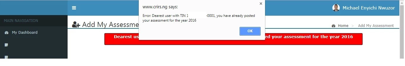 I want to post an assessment for the previous year (2016). However, before the assessment is posted, I want the system to check if I have posted an application for that year 2016 by checking my UserID (uid) and the year. If I have done that already, it should popup a message alerting me that I have already posted for the previous year.