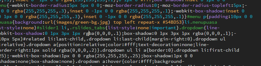After I minified my css file online (DW 2017 thought that minifying shouldn't be included in this version any more???) all code became white after a rgba. See screenshot.