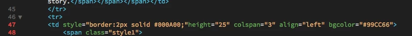 <td style="border: 2px solid #000A00; text-align: left;" height="25" colspan="3" bgcolor="#99CC66">