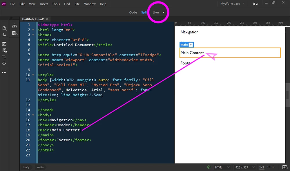 However, just to confuse me, sometimes this approach works perfectly - if I click in an area in the Live window, the Code window automatically displays the correct area.