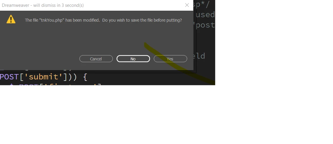 Every time I paste in comments to a file in my local file directory. I get a pop-up box that says, "The file xxx.php has been modified. Do you want to save the file before putting?" I am not even saving. I just pasting in notes. What can I do to stop this?