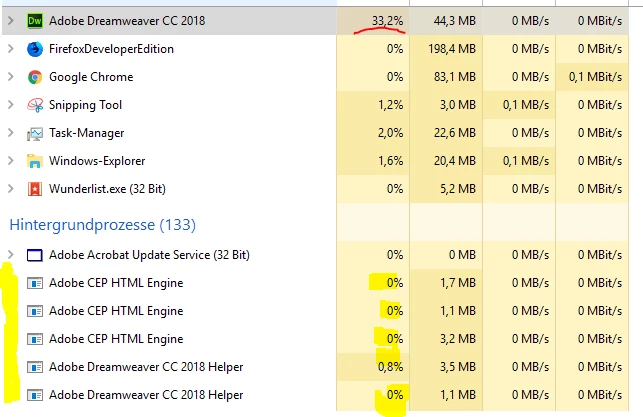 sergei2bParticipantForum|Forum|8 years agoNovember 27, 2017QuestionCPU usage >30%Forum|Forum|8 years agoNovember 27, 20171 reply208 viewsWhy is that so?Current Version of DW 2018 CC