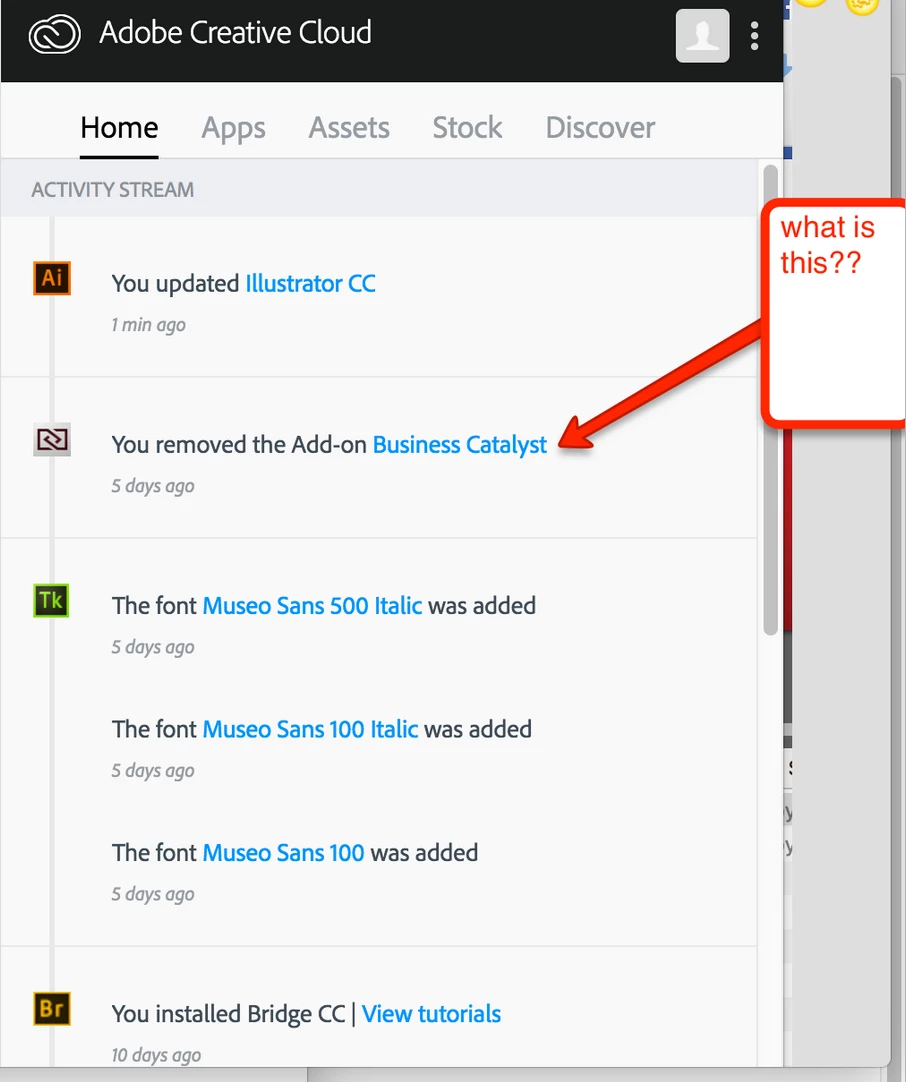I just updated some app today, and then I noticed when press on "home" that Adobe Creative Cloud said "you removed the Add-on Business Catalyst" what is that??
