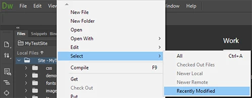 I prefer the following method. In Files Panel, right click on your local site folder. Select > Recently Modified.