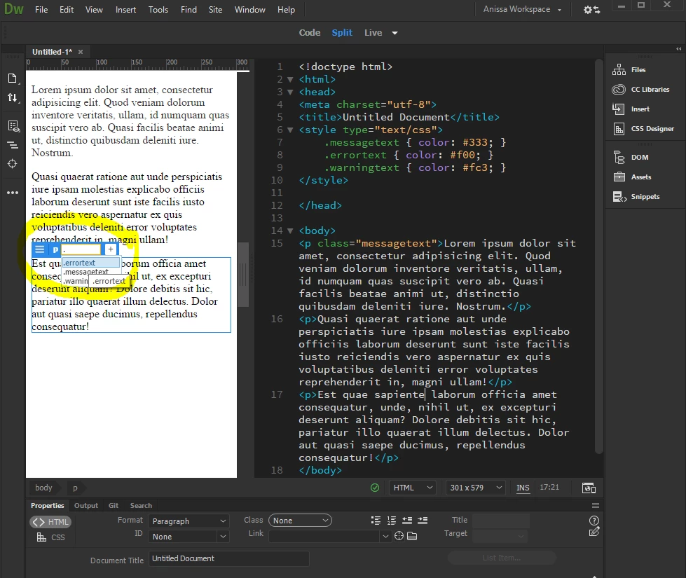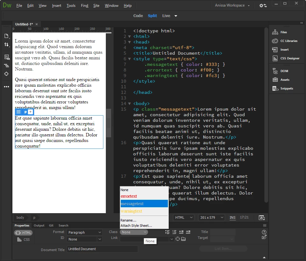 Years ago in Dreamweaver you could assign pre-made CSS styles to your selection by right-clicking and a drop-down of all styles were there. This seems to have disappeared in newer versions. Anyone know of an add-on or preference that would add this back?