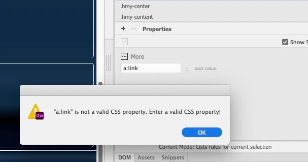 CSS won't let me add a:link... says css is invalid?