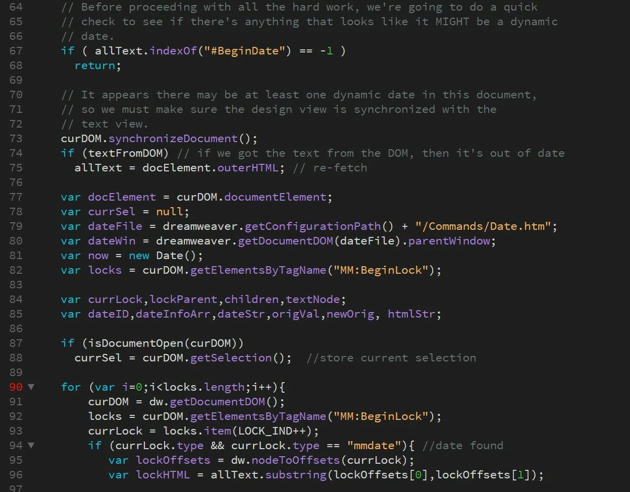 At line 75 of file "C:\Program Files\Adobe\Dreamewaver 2021\Configuration\Commands\Date_beforeSave.htm": docElements has no properties
