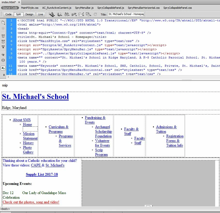 Point taken. The original structure code for the site was written many years ago and clearly needs to be cleaned up and made more consistent. But would this cause design view in Dreamweaver to suddenly stop working since it worked for years in the past? Or am I missing some setting in Dreamweaver?