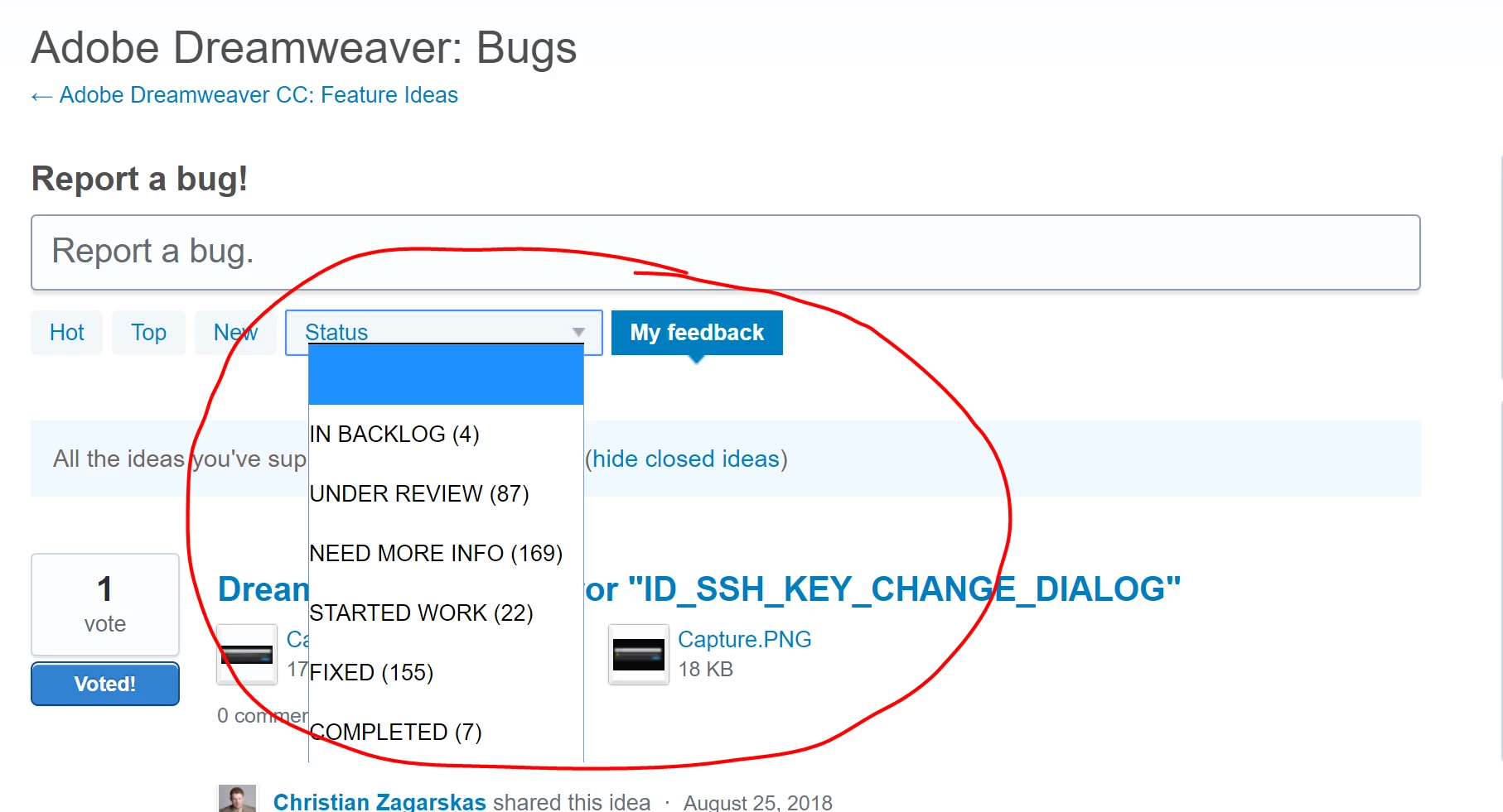they are BUGS and for whatever reason the Adobe Dreamweaver team just calls them "ideas", but trust me, 90% are bugs.