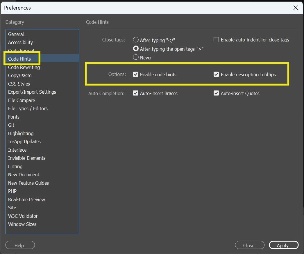 Once again, I have to waste gobs of time trying to fimd where to disable this aggravating feature. I'm using the latest version of DreamWeaver for Mac—21.6—and have spent an exorbitant amount of time looking for this item which, in their determination to drive their users crazy, Adobe has cleverly hidden. Please see the attached image to know what brand of nuisance I'm referring to.
