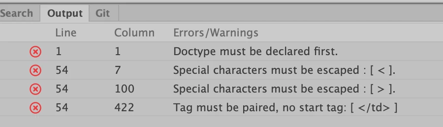 The first line of the code needs to be a doctype declaration. The most current would be <!doctype html> which should then be followed immediately by your <html> tag, then the <head> section.