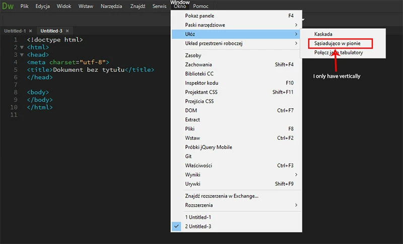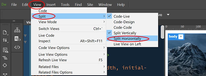 The option to display the adjacent horizontal code is not displayed in the Dreamweaver CC 2019 19.0.1 menu?