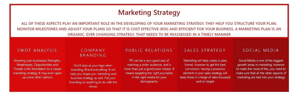 <p>All of these aspects play an important role in the developing of your marketing strategy. They help you structure your plan, monitor milestones and adjust your plans so that it is cost effective (ROI) and efficient for your business. A Marketing plan is an organic, ever changing strategy, that needs to be reassessed in a timely manner</p></div></div>