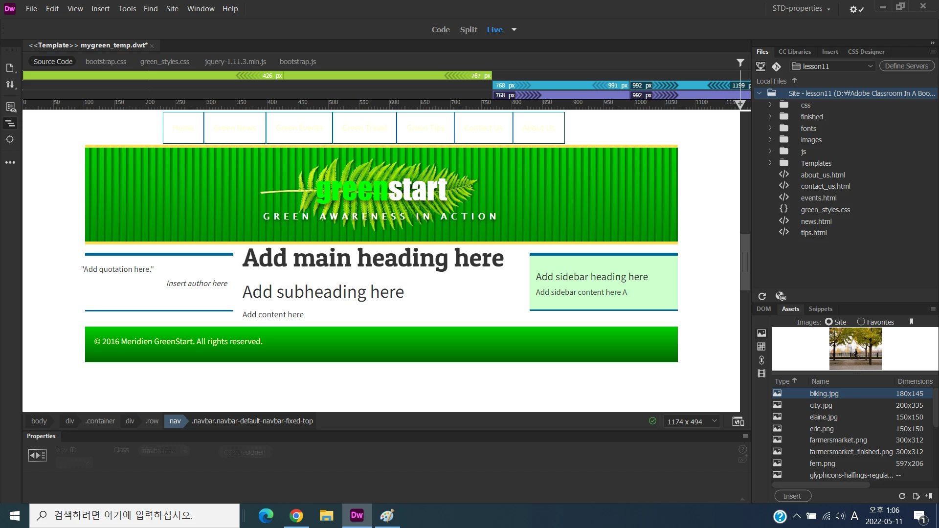 Dosen't display contents of the navbar after inserting new class name (process No.4) in lesson 11 of classroom in a book 2017 as follow the picture...