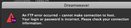 Dreamweaver 20.2 won't connect to GoDaddy any longer