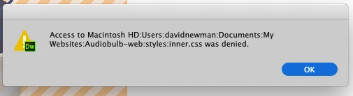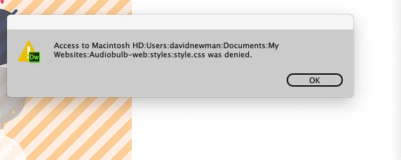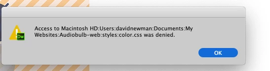 Dreamweaver 20 - Access to Macintosh HD:Users:Me:Documents:WebsiteFolder:style.css was denied