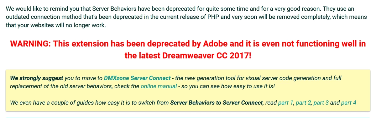 That feature is deprecated. The code it produces is outdated. It's not secure. It won't work with PHP 7 servers. You should not use it for current or future projects. See the warning statement below.