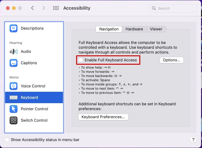 This is known Monterey problem. Disable Full Keyboard Access in Monterey's Accessibility settings.