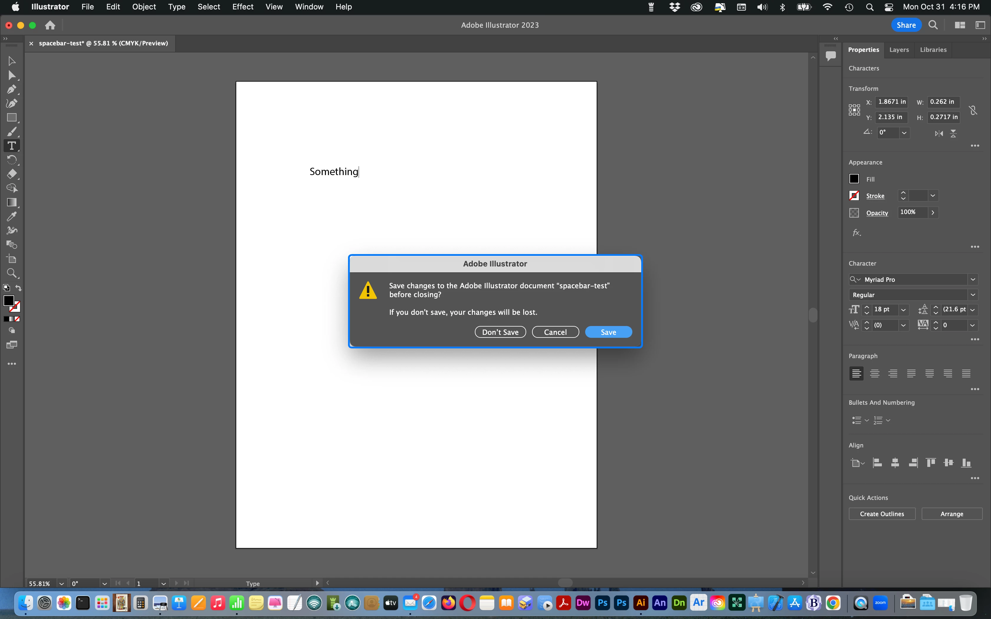 BUG - Dreamweaver 2021 - Mac OS 12.6.1 - using space bar while typing forces HTML page to CLOSE. Unable to use 'space' bar while typing in Code view and Design view.