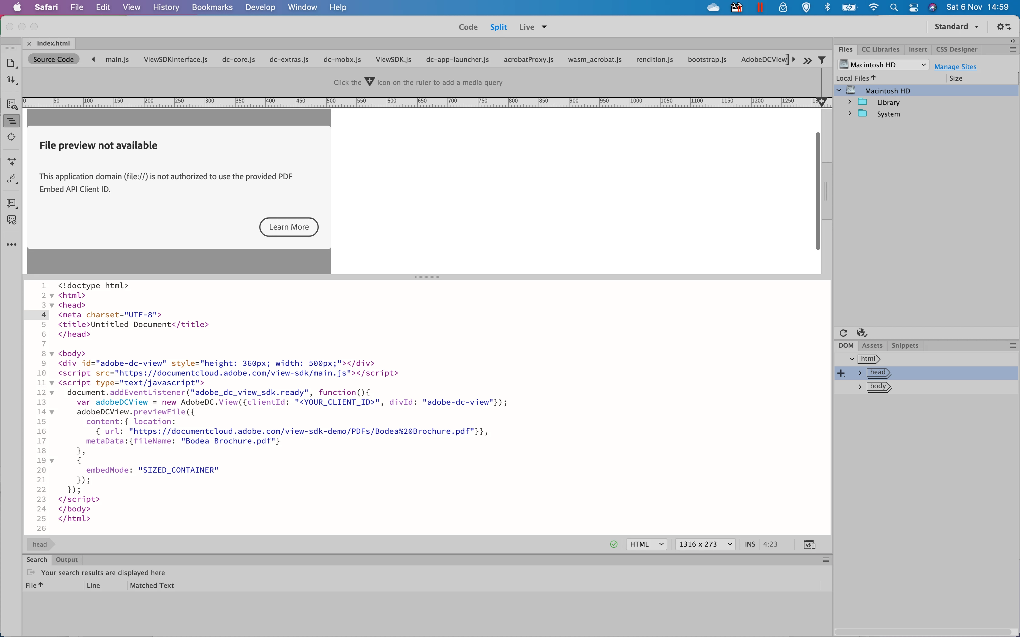 Dreamweaver and Adobe Embed PDF API