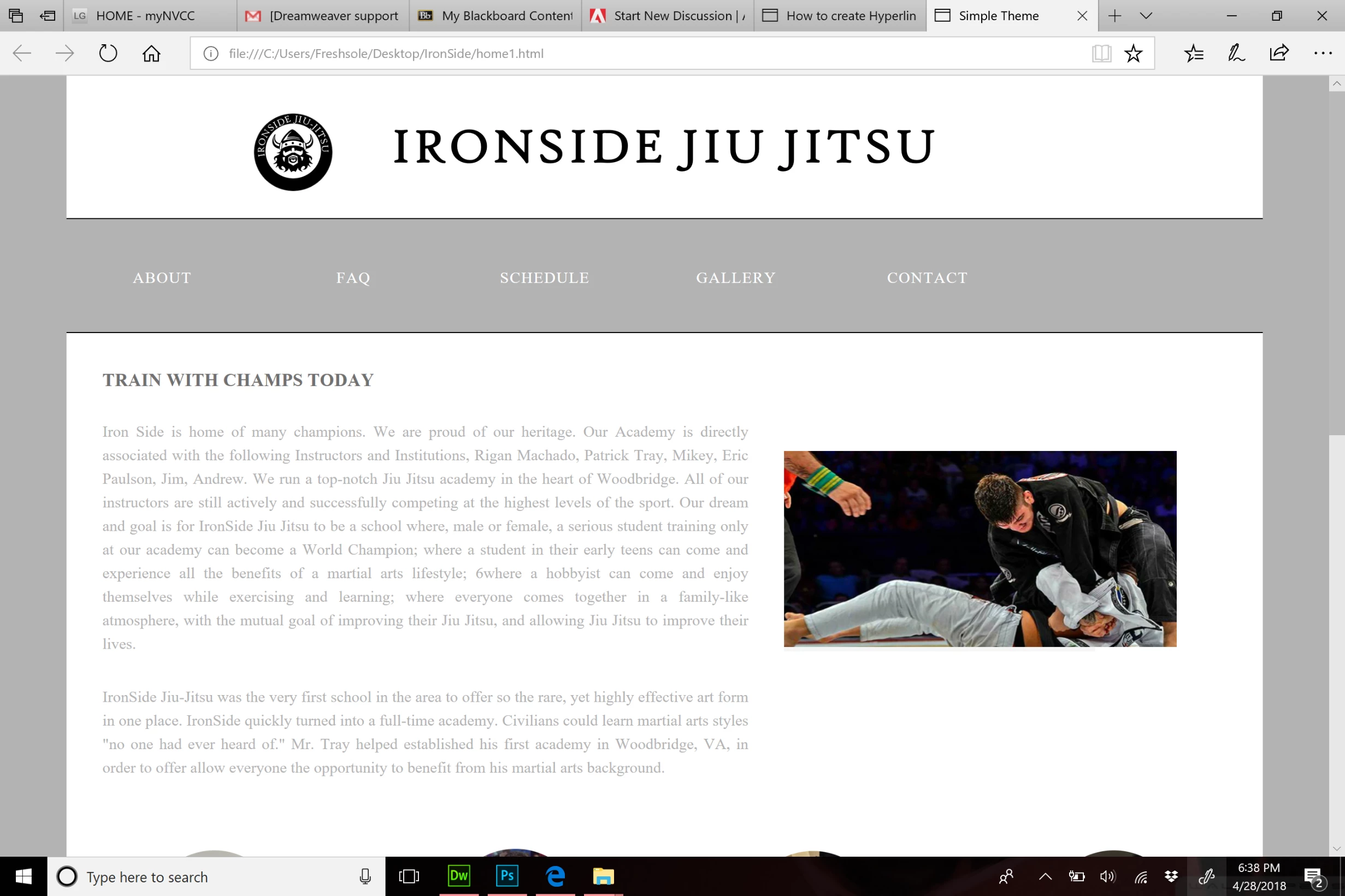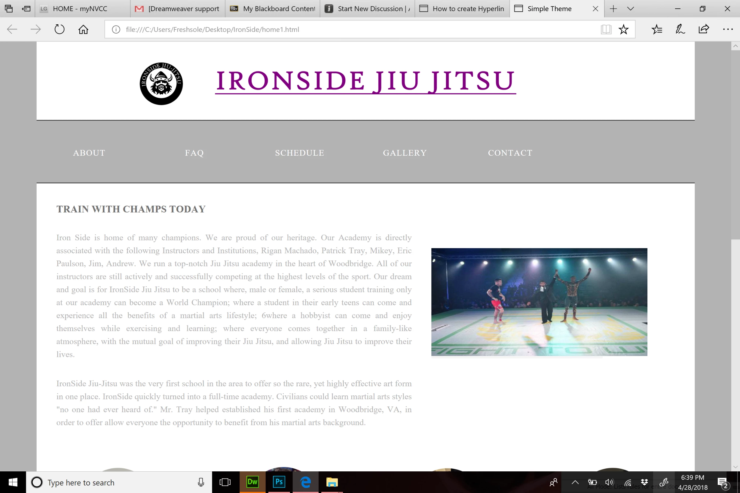 <p>IronSide Jiu-Jitsu was the very first school in the area to offer so the rare, yet highly effective art form in one place. IronSide quickly turned into a full-time academy. Civilians could learn martial arts styles "no one had ever heard of." Mr. Tray helped established his first academy in Woodbridge, VA, in order to offer allow everyone the opportunity to benefit from his martial arts background. </p>