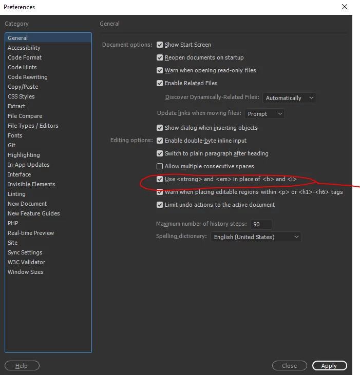 I realize that the original italics tag was <i></i> and is now <em>, so I get why Dreamweaver is changing the tag when I'm working in code view. The problem is nowadays when working with font icons we are using the <i> tag in code to display icons ie...<i class="fa fa-clock"></i>. Is there a way to get Dreamweaver to stop auto-correcting the code every time I click on a line of code that includes the icon code? I don't really want to turn auto correct off completely.