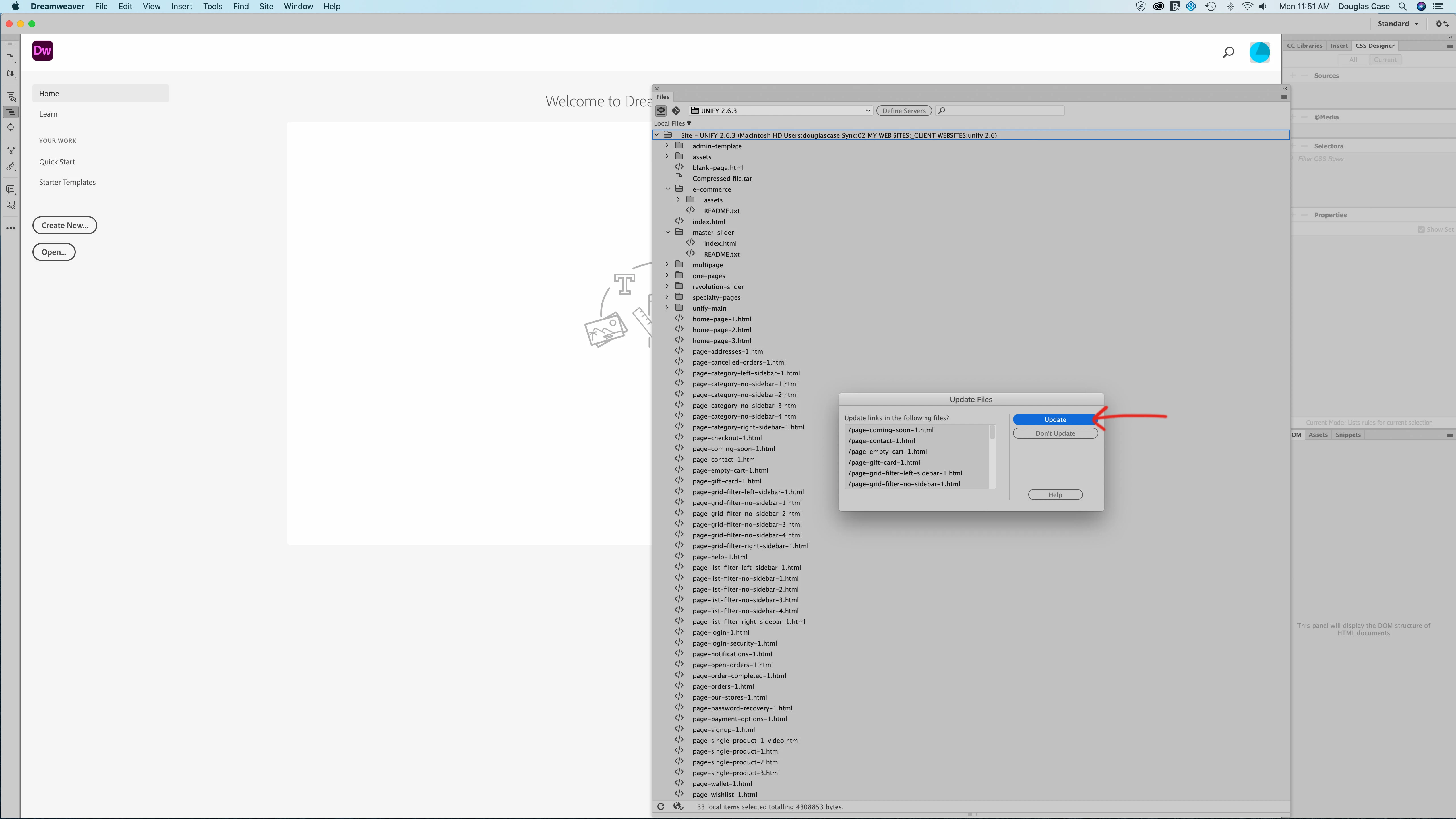 Dreamweaver crashes after updating links in files for a site