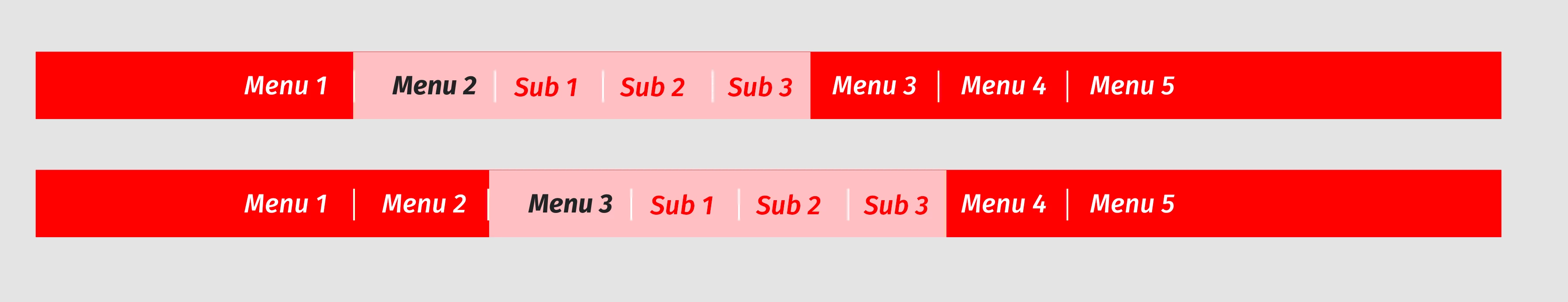Menu 2 is open and all the other menu are closed. In Menu 2 there are 3 sub menu to choose from.