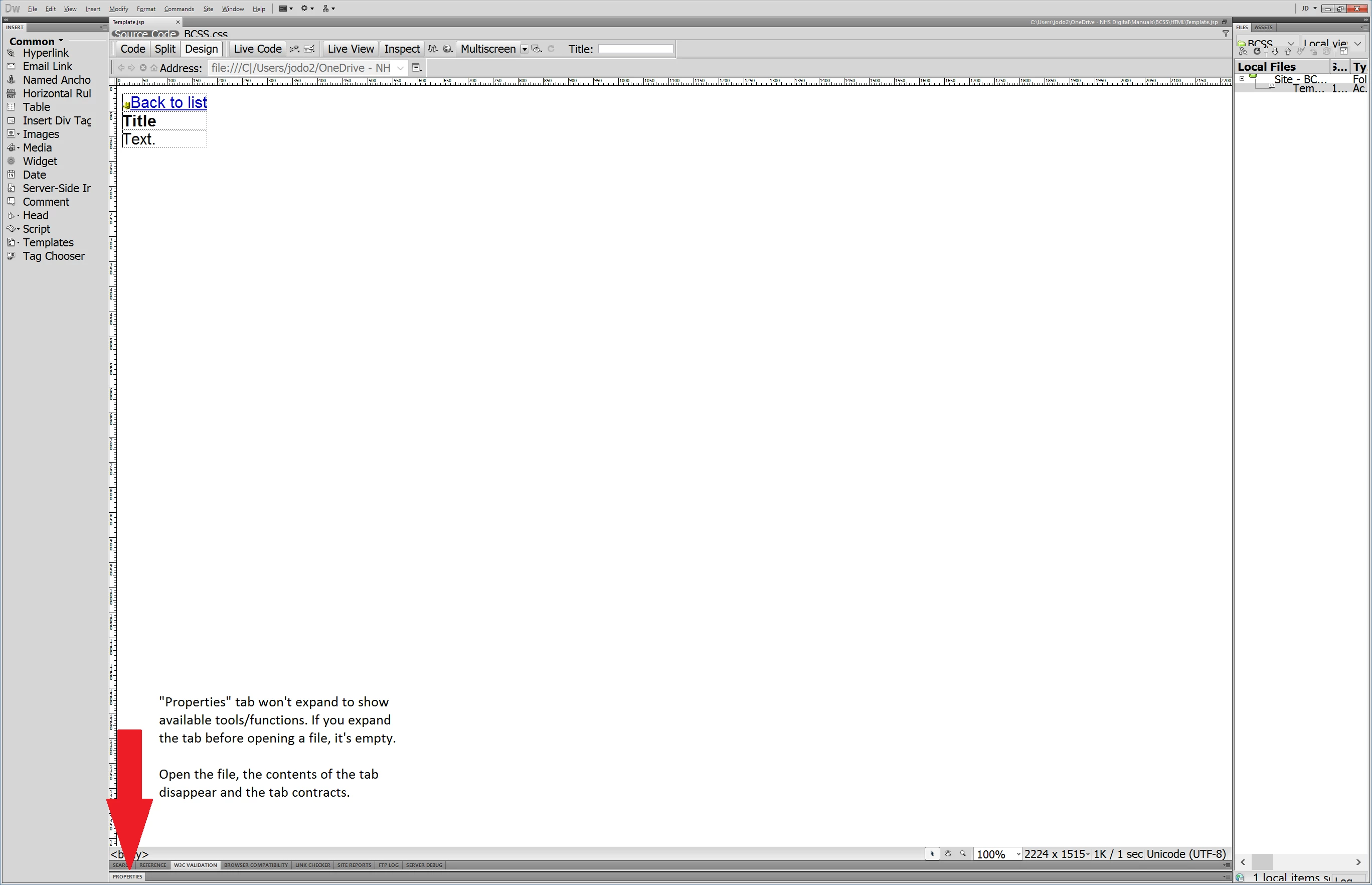Dreamweaver CS5.5 The 'Properties' tab within Dreamweaver don't display