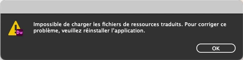Dreamweaver «impossible de charger les fichiers de ressources traduits»
