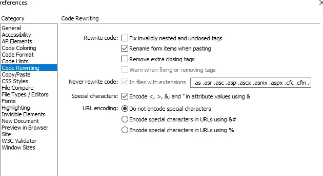Changing Dictionary in preferences did not help, and Code rewriting> URL encoding - neither of the three options worked out (see the jpg at the bottom).