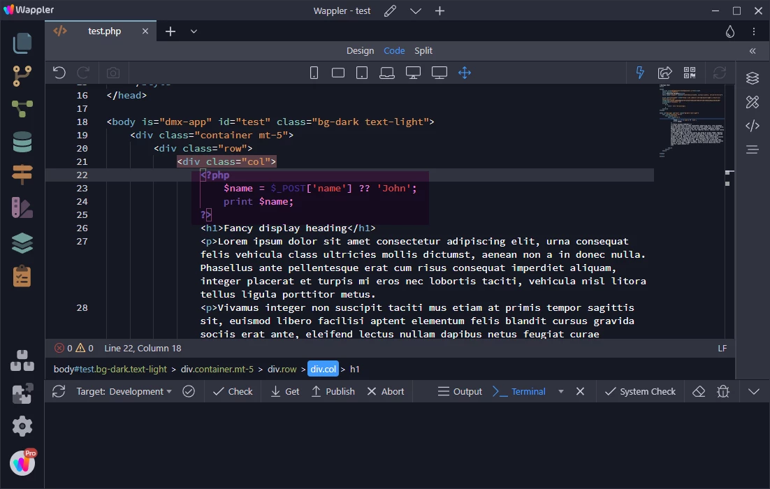 Dreamweaver shows an error for the Null Coalescing Operator (??), a PHP 7 feature